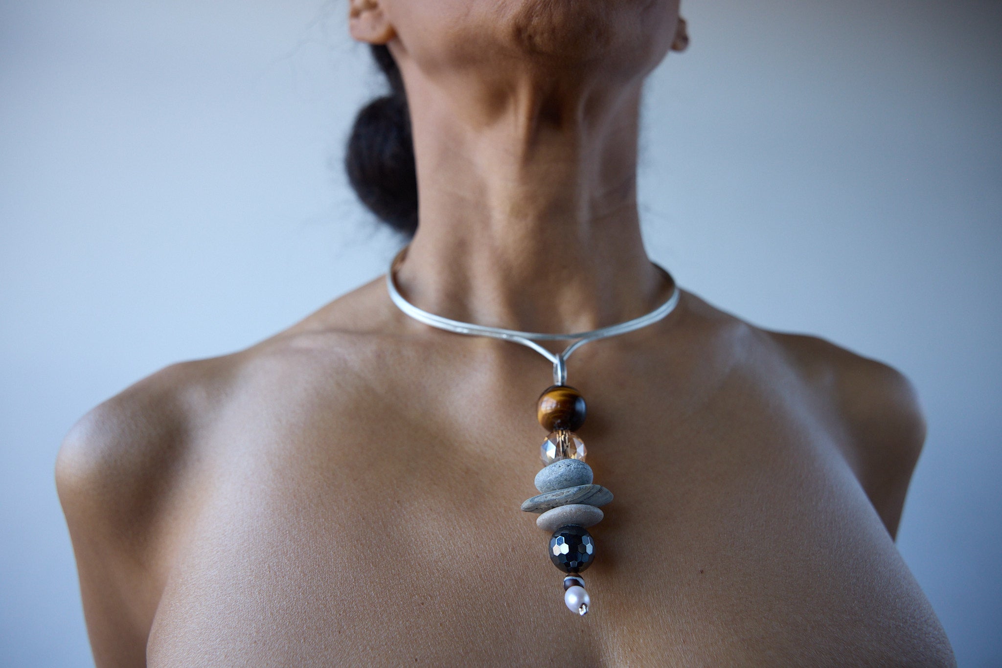 Measuring 16.5 inches, each necklace gracefully features upcycled Hermès silk scarves, intricately knotted to showcase luminous rock crystal elements. The clarity of the rock crystal allows the vibrant design elements of the scarf to be appreciated in a new light, creating a dynamic interplay of color and light. The natural flow of the silk is beautifully preserved, creating a redefined drape that is finished with a secure sterling silver clasp. This piece not only elevates a summer ensemble but also speaks to the enduring allure of conscientiously reimagined luxury. It’s a tangible link to a storied past, artfully refreshed for today.