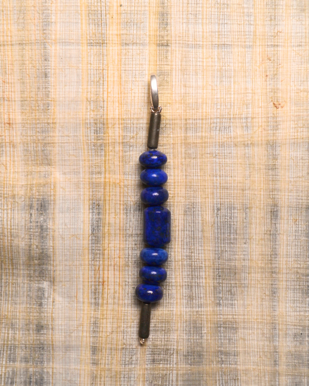 Composed of lapis and rock crystal with a sterling silver clasp. Measures 4 inches