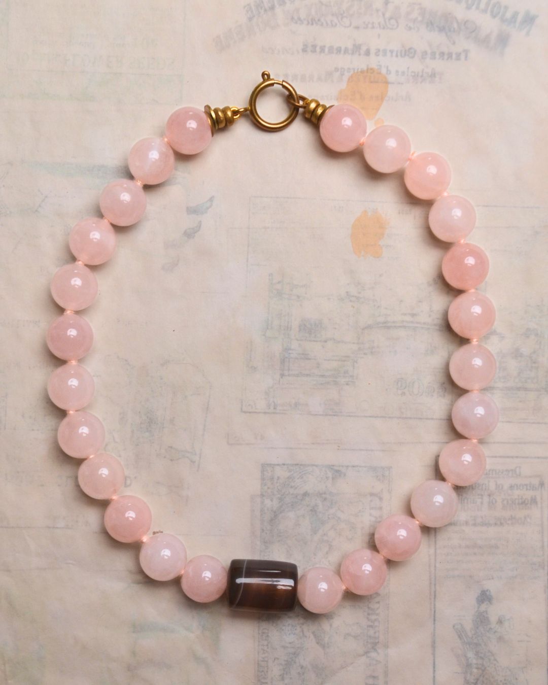 17" necklace crafted with vintage Rose Quartz and Grey Lace Agate.