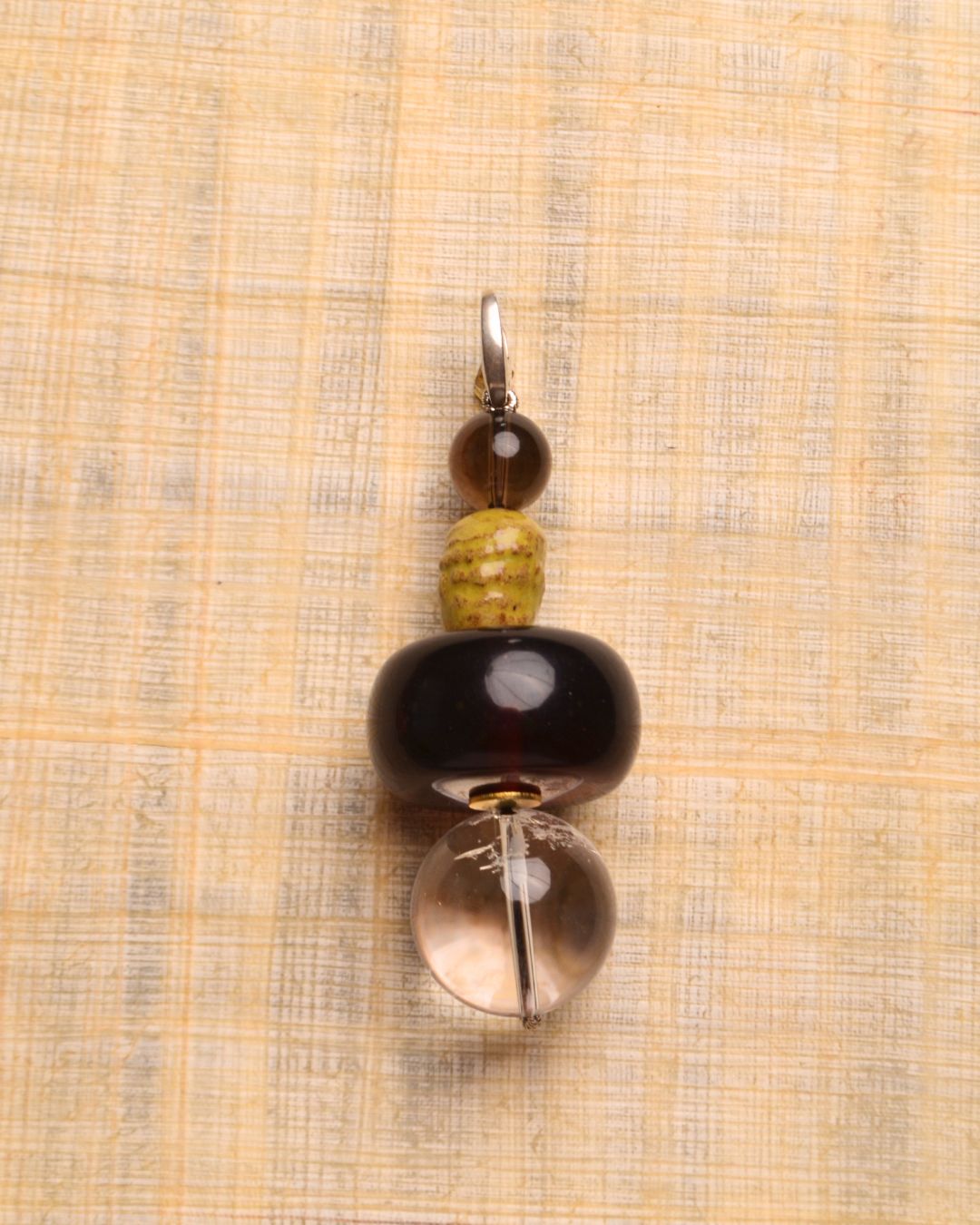 Assortment of semi-precious stones, clay, wood and a sterling silver clasp.