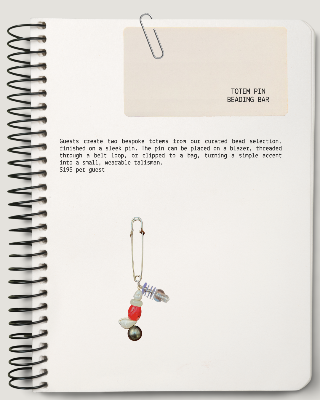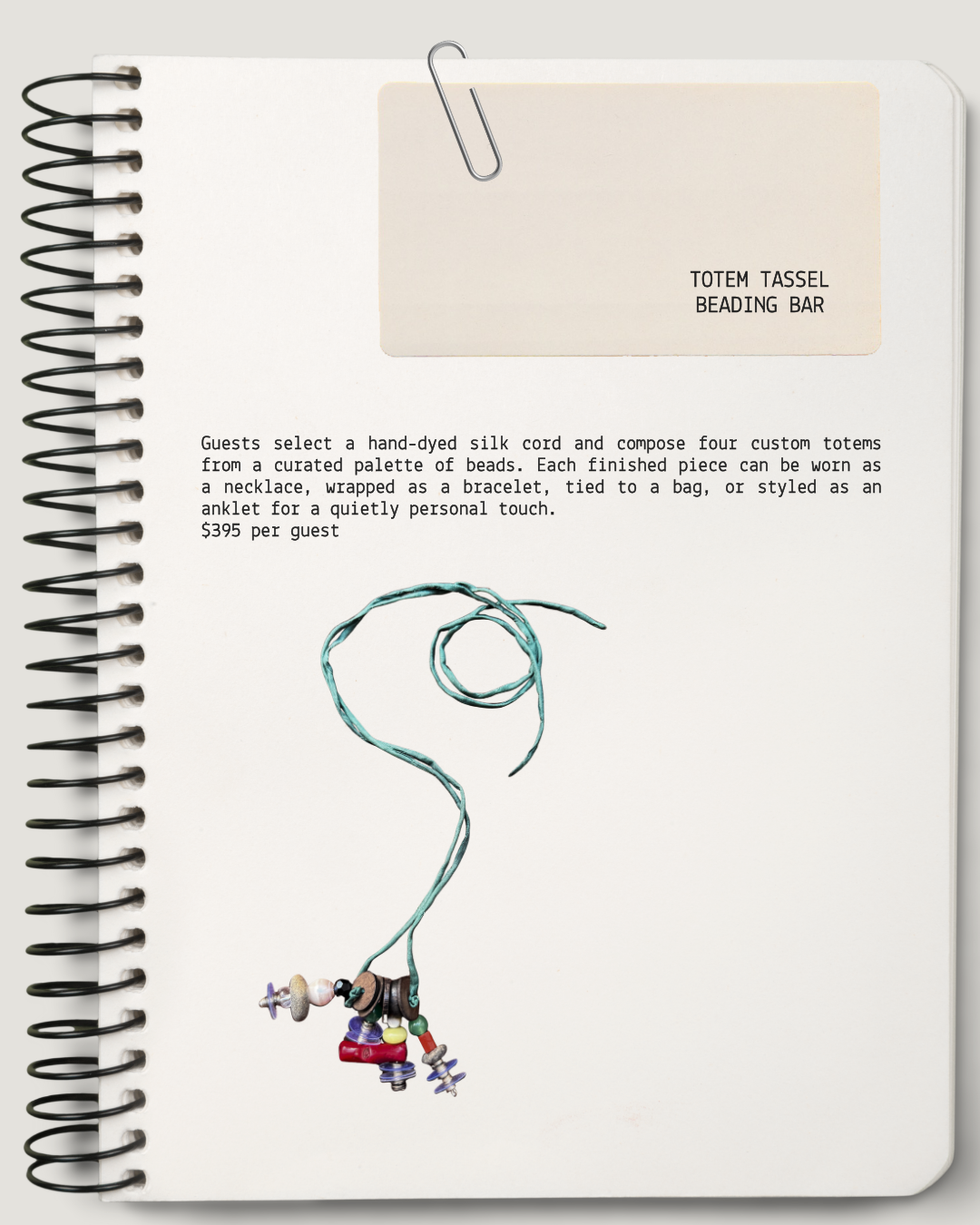In addition to our collection, guests are welcome to spend time at our on-site Beading Bar, where you can design a personalized piece from our curated selection of beads and materials.