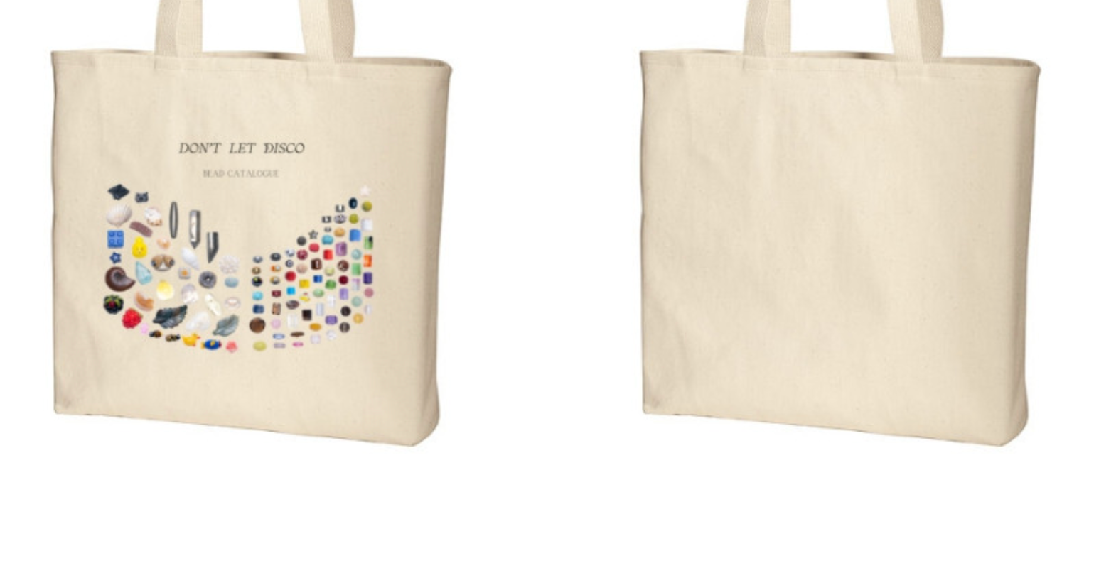 Take a charming approach to everyday errands with our delightful 100% cotton twill tote bag from Don’t Let Disco Bead Atelier. This sturdy, 10 oz. canvas is adorned with a beautifully printed catalog showcasing our favorite or most frequently used beads - a true testament to our bead obsession!