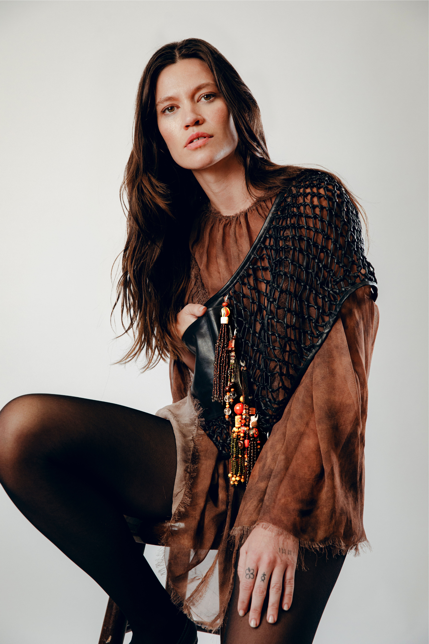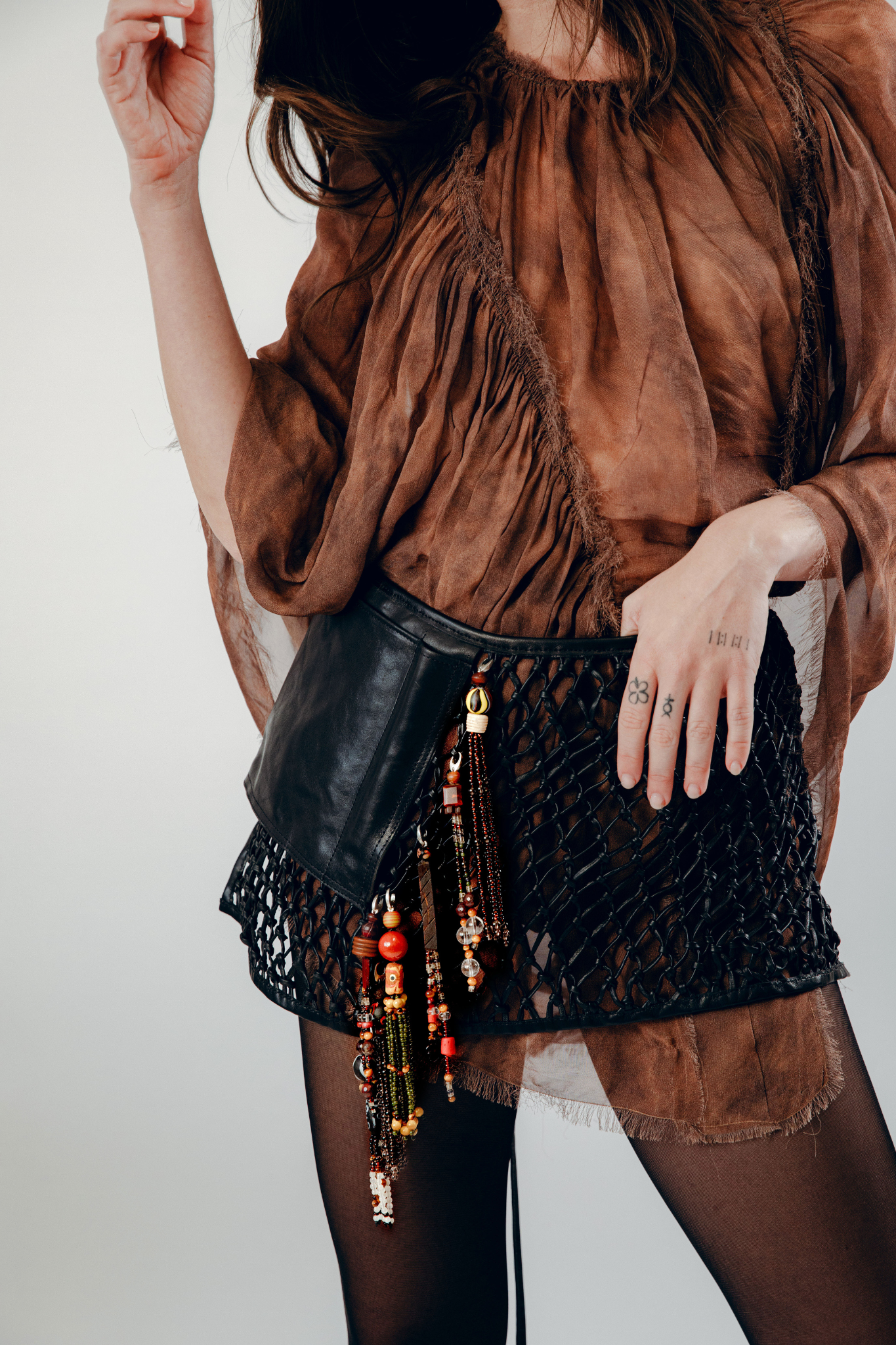 Designed as a framework, the apron serves as a canvas. Its open grid provides a structure for personal narrative, allowing for the addition of individual charms or totems (sold separately). It is a piece to be lived in, a testament to the unique expression of self.