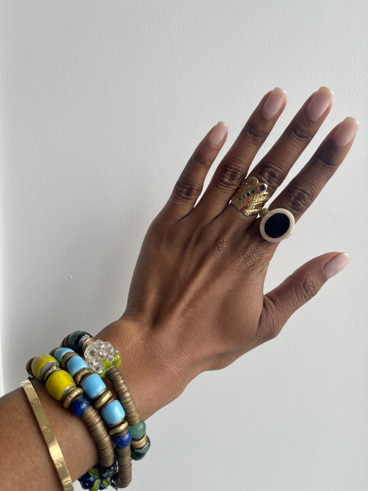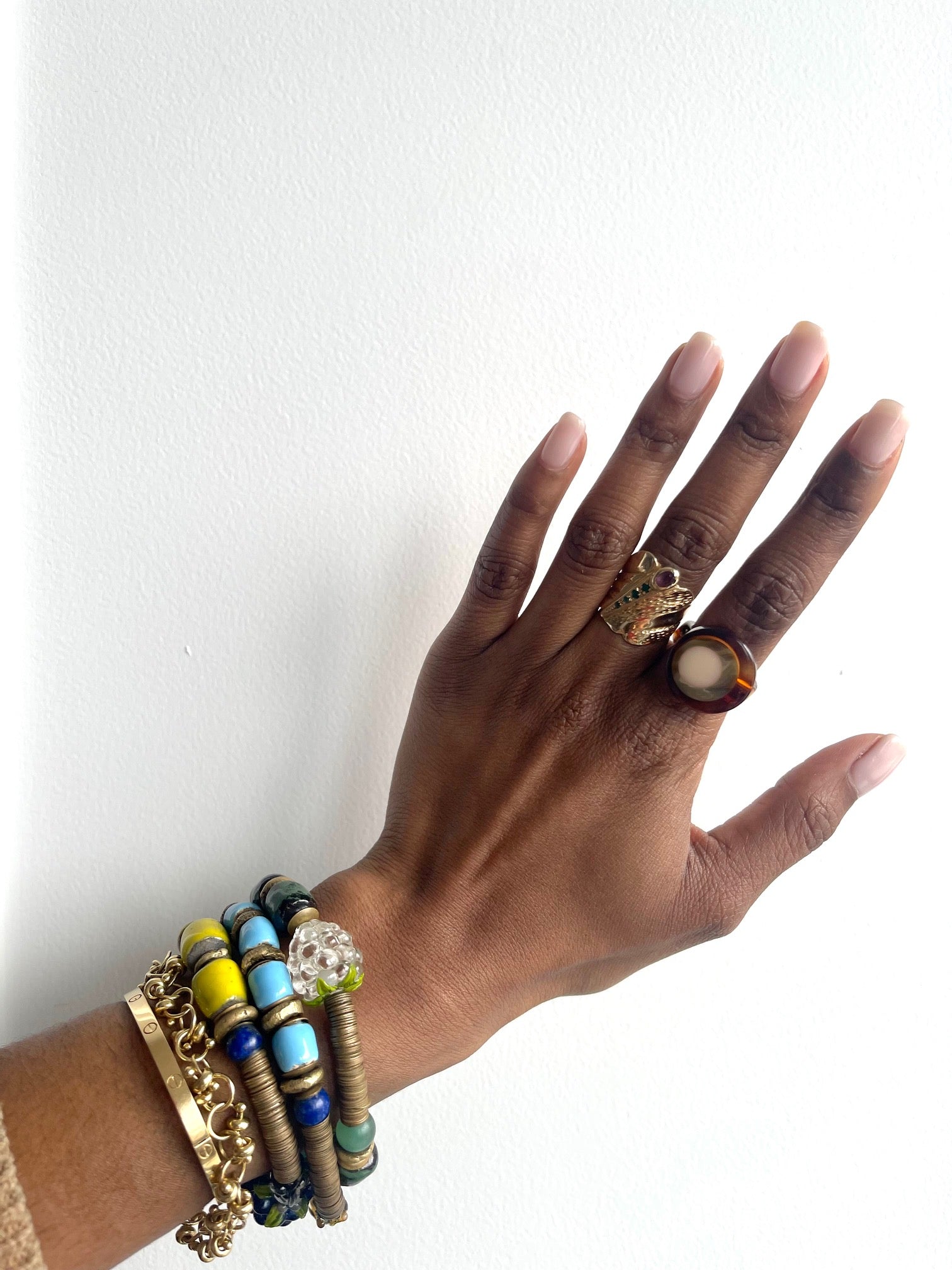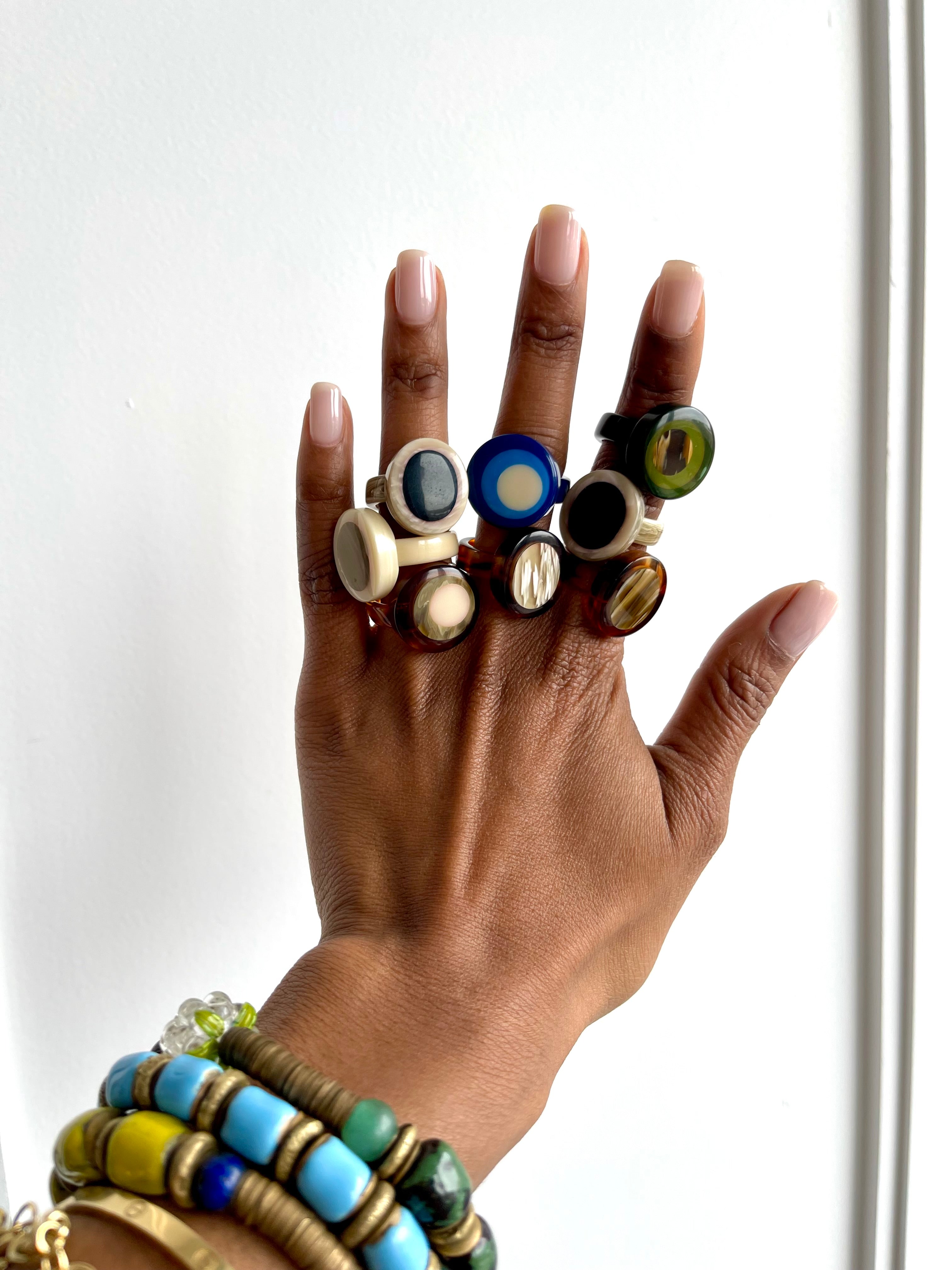 Nothing says “laidback chic” quite a vintage Lucite statement ring. You can stack this retro yet timeless ring with precious metals and stones or simply let it stand on it's own. Either way, it will add the perfect vintage flare to any environment. These were acquired from a German vintage dealer, so inventory is limited and all sales are final. Rings come in US ring size 6.5 & 7.5.
